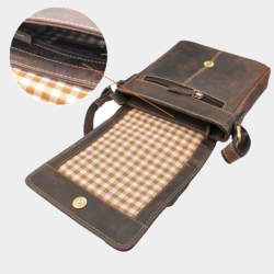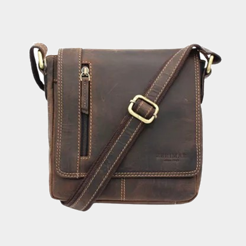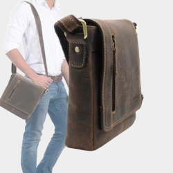 Un sac à bandoulière en cuir de vachette naturel pratique et compact avec 4 compartiments zippés et une bandoulière robuste et réglable pour transporter en toute sécurité tous vos objets de valeur.