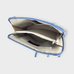 A side pocket on the outside for the essentials, a zipped pocket on the inside and a main zipped compartment for a safe walk everywhere.